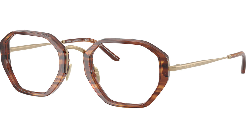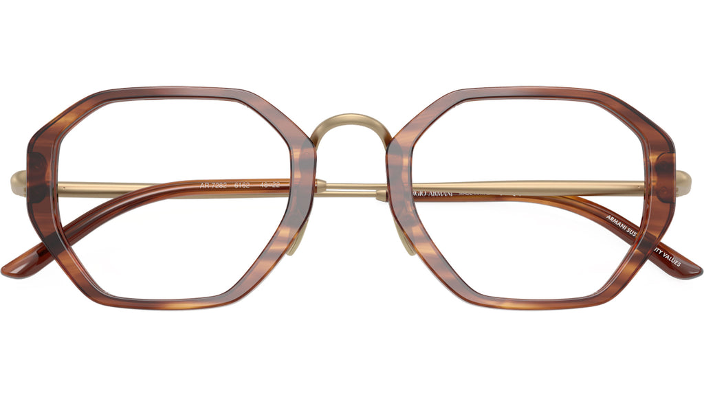 Occhiali da vista Giorgio Armani AR 7282 6162 con montatura geometrica in acetato marrone striato e lenti demo. Naselli regolabili. Linea: Visionary Luxury. Codice modello: 0AR7282. Codice colore: 6162. Rivenditore autorizzato Giorgio Armani online. Gli occhiali vengono consegnati con custodia e accessori originali e sono coperti dalla garanzia ufficiale di 12 mesi del produttore.