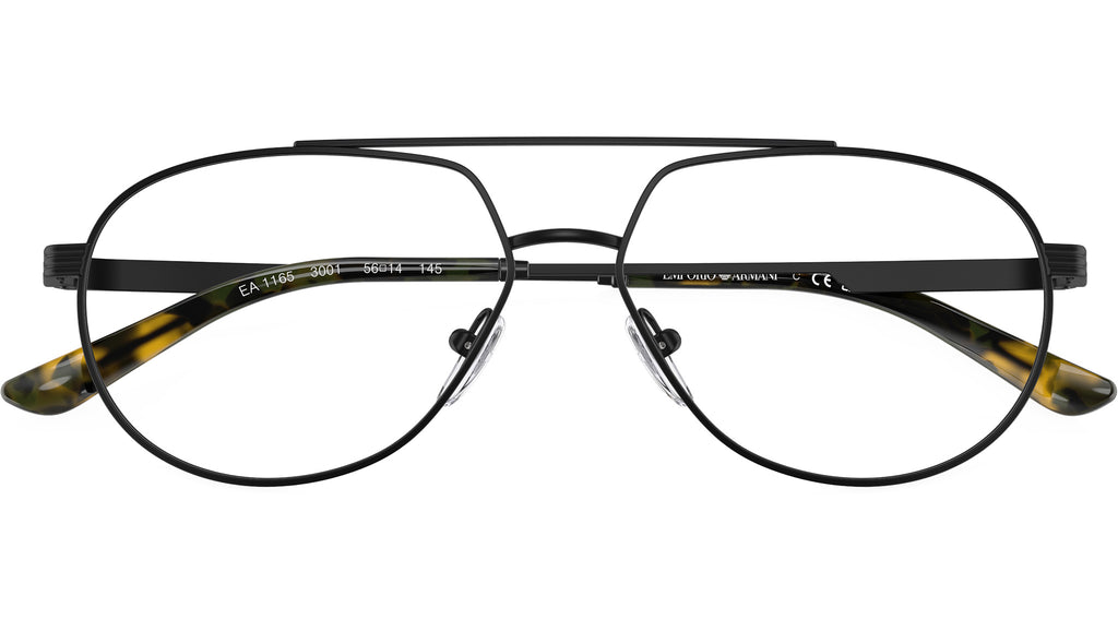 Occhiali da vista Emporio Armani EA1165 3001 con montatura aviatore in metallo nero opaco e lenti demo. Naselli regolabili. Linea: Modern. Codice modello: 0EA1165. Codice colore: 3001. Rivenditore autorizzato Emporio Armani online. Gli occhiali vengono consegnati con custodia e accessori originali e sono coperti dalla garanzia ufficiale di 12 mesi del produttore.