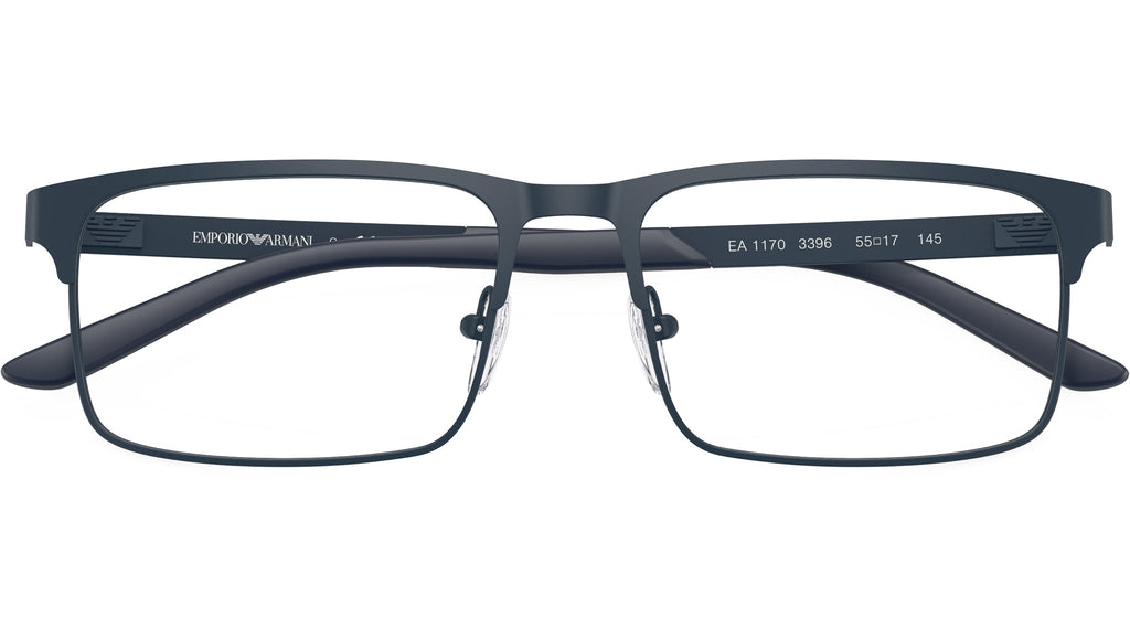 Occhiali da vista Emporio Armani EA1170 3396 con montatura rettangolare in metallo blu opaco e lenti demo. Naselli regolabili. Linea: Essential Leisure. Codice modello: 0EA1170. Codice colore: 3396. Rivenditore autorizzato Emporio Armani online. Gli occhiali vengono consegnati con custodia e accessori originali e sono coperti dalla garanzia ufficiale di 12 mesi del produttore.