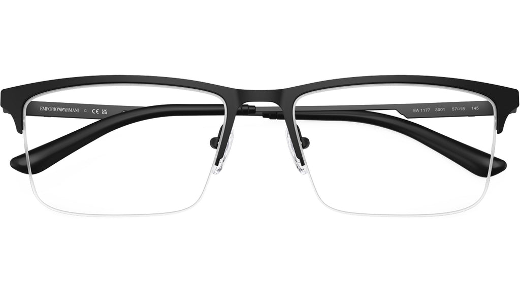 Occhiali da vista Emporio Armani EA1177 3001 con montatura rettangolare in metallo nero opaco e lenti demo. Naselli regolabili. Linea: Modern. Codice modello: 0EA1177. Codice colore: 3001. Rivenditore autorizzato Emporio Armani online. Gli occhiali vengono consegnati con custodia e accessori originali e sono coperti dalla garanzia ufficiale di 12 mesi del produttore.