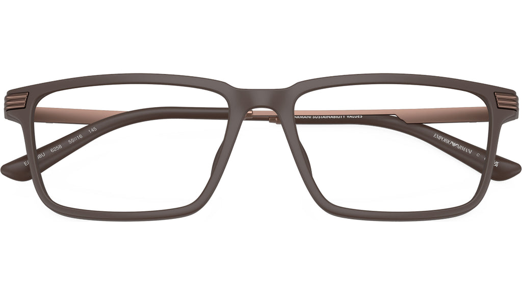 Occhiali da vista Emporio Armani EA3268U 6258 con montatura rettangolare in iniettato marrone opaco e lenti demo. Fit universale. Linea: Modern. Codice modello: 0EA3268U. Codice colore: 6258. Rivenditore autorizzato Emporio Armani online. Gli occhiali vengono consegnati con custodia e accessori originali e sono coperti dalla garanzia ufficiale di 12 mesi del produttore.