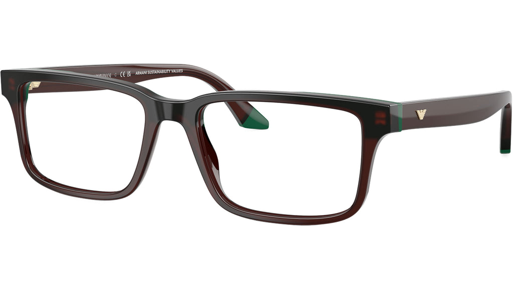 Occhiali da vista Emporio Armani EA3269 6315 con montatura rettangolare in acetato marrone opalino / verde e lenti demo. Vestibilità a ponte alto. Linea: Essential Leisure. Codice modello: 0EA3269. Codice colore: 6315. Rivenditore autorizzato Emporio Armani online. Gli occhiali vengono consegnati con custodia e accessori originali e sono coperti dalla garanzia ufficiale di 12 mesi del produttore.