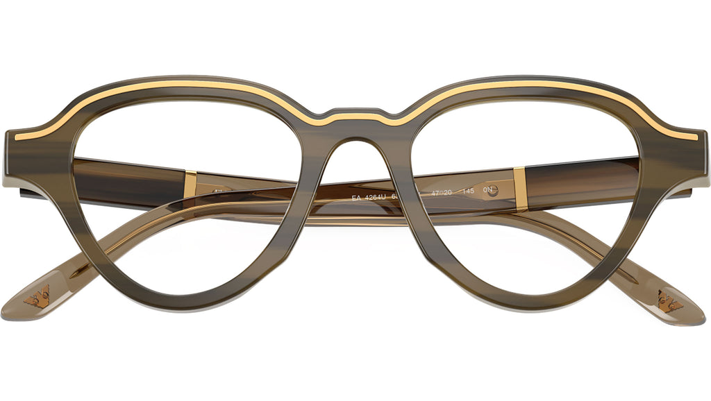 Occhiali da sole Emporio Armani EA4264U 63381W con montatura geometrica in acetato marrone su beige rigato e lenti in bio poliammide color trasparente. Fit universale. Linea: Trend. Codice modello: 0EA4264U. Codice colore: 63381W. Rivenditore autorizzato Emporio Armani online. Gli occhiali vengono consegnati con custodia e accessori originali e sono coperti dalla garanzia ufficiale di 12 mesi del produttore.