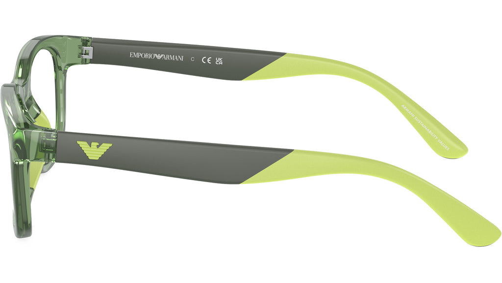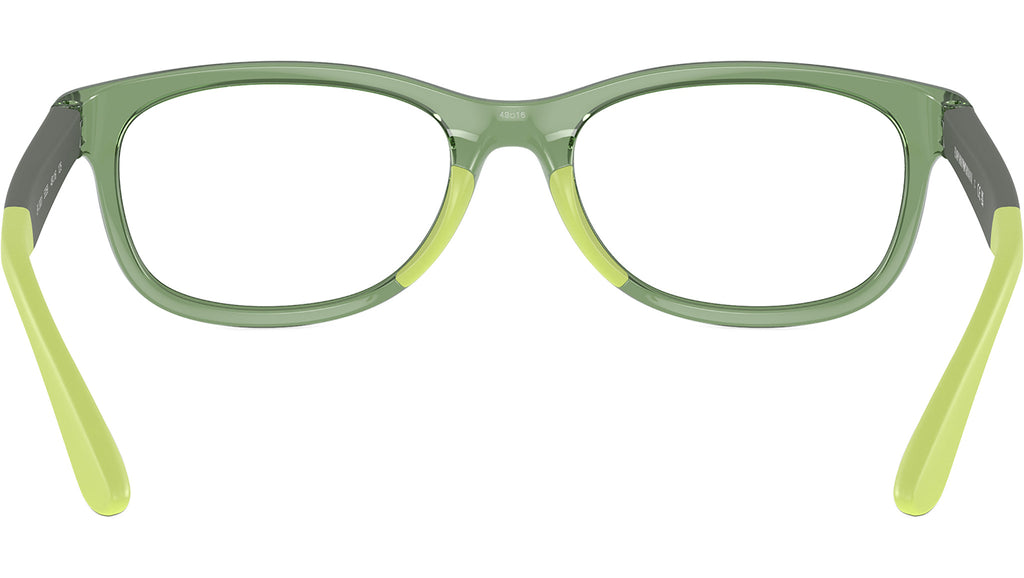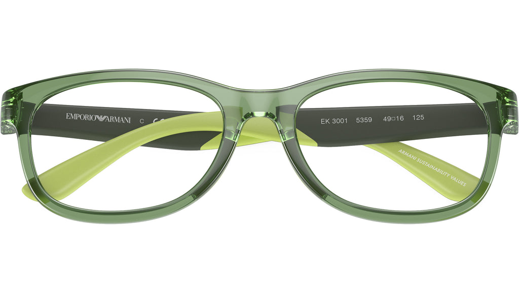 Occhiali da vista Emporio Armani Kids EK3001 5359 con montatura d-frame in iniettato verde trasparente lucido e lenti demo. Vestibilità a ponte alto. Linea: Essential Leisure. Codice modello: 0EK3001. Codice colore: 5359. Rivenditore autorizzato Emporio Armani Kids online. Gli occhiali vengono consegnati con custodia e accessori originali e sono coperti dalla garanzia ufficiale di 12 mesi del produttore.