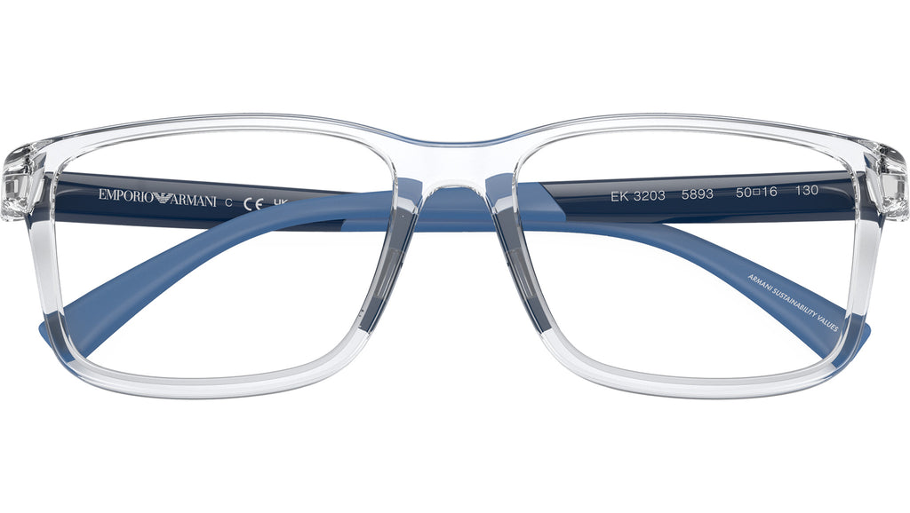Occhiali da vista Emporio Armani Kids EK3203 5893 con montatura d-frame in iniettato cristallo e lenti demo. Vestibilità a ponte alto. Linea: Essential Leisure. Codice modello: 0EK3203. Codice colore: 5893. Rivenditore autorizzato Emporio Armani Kids online. Gli occhiali vengono consegnati con custodia e accessori originali e sono coperti dalla garanzia ufficiale di 12 mesi del produttore.