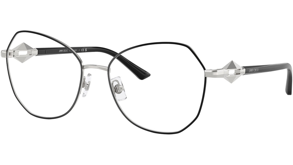 Occhiali da vista Jimmy Choo JC2011 3016 donna, con montatura rotonda in metallo color argento / nero e lenti demo. Naselli regolabili. Linea: Diamond. Codice modello: 0JC2011. Codice colore: 3016. Rivenditore autorizzato Jimmy Choo online. Ogni prodotto Jimmy Choo viene consegnato con astuccio originale e accessori ed è coperto da garanzia del produttore di 12 mesi.