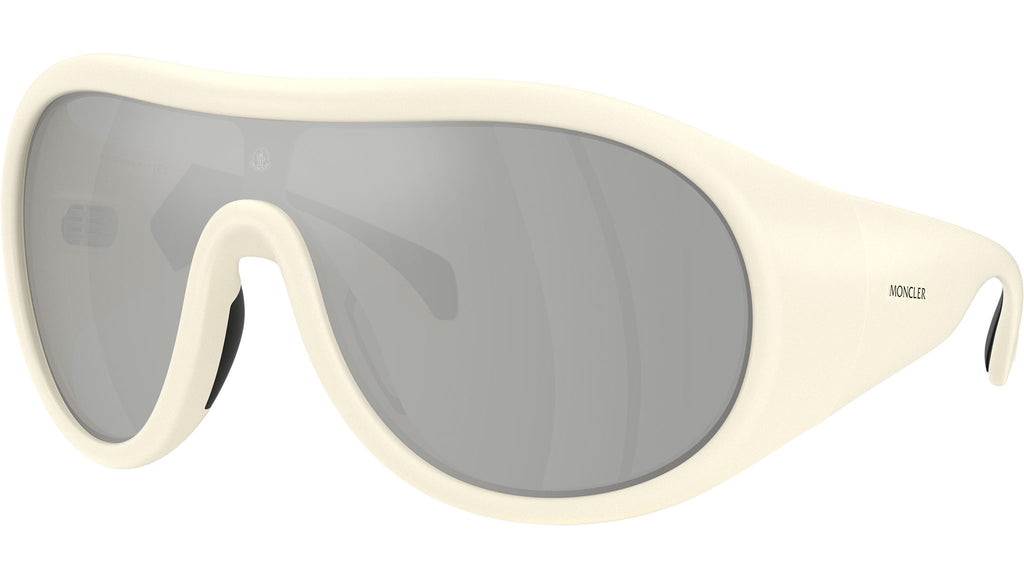 Occhiali da sole Moncler ME8004 Cloche 50028V unisex con montatura aviatore in iniettato burro opaco e lenti in poliammide color argento a specchio chiaro. Fit universale. Linea: Sport. Codice modello: 0ME8004. Codice colore: 50028V. Made in Italy. Rivenditore autorizzato Moncler online. Gli occhiali vengono consegnati con custodia e accessori originali e sono coperti dalla garanzia ufficiale di 12 mesi del produttore.
