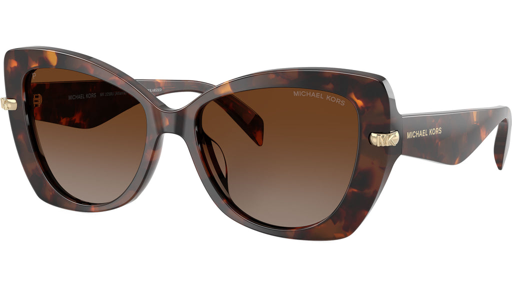 Occhiali da sole Michael Kors donna modello Atlanta MK2258U 4031T5 con montatura a farfalla in acetato tartaruga bagaglio e lenti in CR-39 marrone sfumato polare base 4. Fit universale. Linea: Glamour. Codice Brand: 0MK2258U. Codice colore: 4031T5. Rivenditore autorizzato online Michael Kors Eyewear. Ogni prodotto Michael Kors viene consegnato con astuccio originale e accessori ed è coperto da garanzia del produttore di 12 mesi.