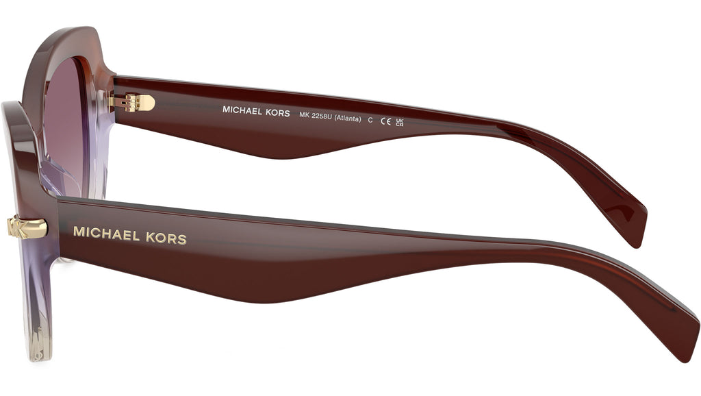 Occhiali da sole Michael Kors donna modello Atlanta MK2258U 40366X con montatura a farfalla in acetato vino sfumato e lenti in poliammide viola sfumato base 4. Fit universale. Linea: Glamour. Codice Brand: 0MK2258U. Codice colore: 40366X. Rivenditore autorizzato online Michael Kors Eyewear. Ogni prodotto Michael Kors viene consegnato con astuccio originale e accessori ed è coperto da garanzia del produttore di 12 mesi.