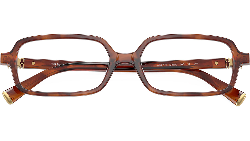 Occhiali da vista Miu Miu MU 01YV 26E1O1 donna con montatura rettangolare in acetato tabacco striato e lenti demo. Vestibilità a ponte alto. Linea: Main Collection. Codice modello: 0MU 01YV. Codice colore: 26E1O1. Made in Italy. Rivenditore autorizzato Miu Miu online. Gli occhiali vengono consegnati con custodia e accessori originali e sono coperti dalla garanzia ufficiale di 12 mesi del produttore.