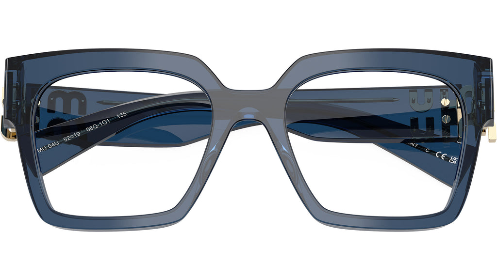 Occhiali da vista Miu Miu MU 04UV 08Q1O1 donna con montatura quadrata in acetato blu trasparente e lenti demo. Vestibilità a ponte alto. Linea: Irreverently Sophisticated. Codice modello: 0MU 04UV. Codice colore: 08Q1O1. Made in Italy. Rivenditore autorizzato Miu Miu online. Gli occhiali vengono consegnati con custodia e accessori originali e sono coperti dalla garanzia ufficiale di 12 mesi del produttore.