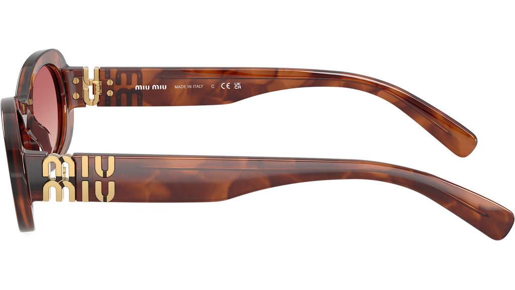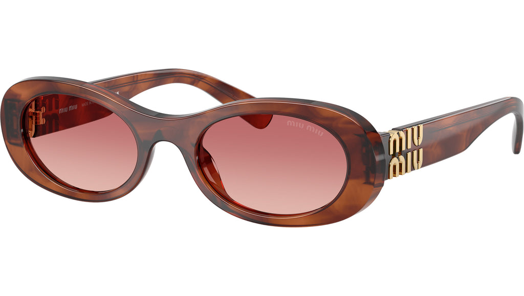 Occhiali da sole Miu Miu MU 06ZS 26E50U donna con montatura ovale in acetato tabacco striato e lenti in bio poliammide color etruscan. Naselli regolabili. Linea: Irreverently Sophisticated. Codice modello: 0MU 06ZS. Codice colore: 26E50U. Made in Italy. Rivenditore autorizzato Miu Miu online. Gli occhiali vengono consegnati con custodia e accessori originali e sono coperti dalla garanzia ufficiale di 12 mesi del produttore.