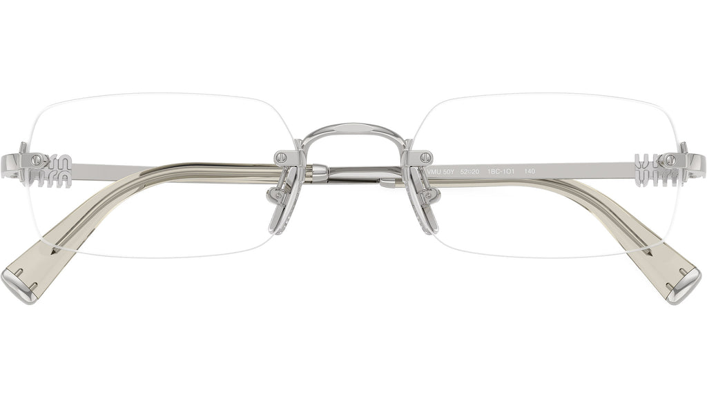 Occhiali da vista Miu Miu MU 50YV 1BC1O1 donna con montatura rettangolare in metallo argento e lenti demo. Naselli regolabili. Linea: Main Collection. Codice modello: 0MU 50YV. Codice colore: 1BC1O1. Made in Italy. Rivenditore autorizzato Miu Miu online. Gli occhiali vengono consegnati con custodia e accessori originali e sono coperti dalla garanzia ufficiale di 12 mesi del produttore.