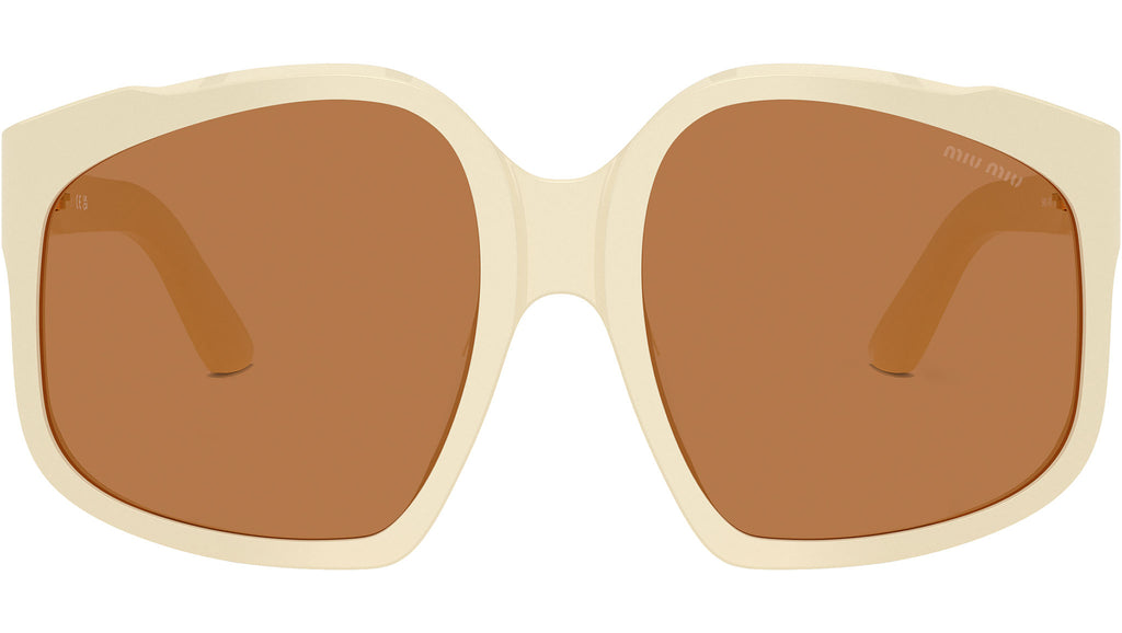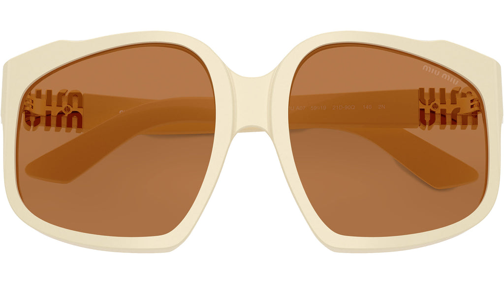 Occhiali da sole Miu Miu MU A07S 21D90Q donna con montatura geometrica in acetato bianco latte e lenti in bio poliammide color marrone. Vestibilità a ponte alto. Linea: Fashion Show. Codice modello: 0MU A07S. Codice colore: 21D90Q. Made in Italy. Rivenditore autorizzato Miu Miu online. Gli occhiali vengono consegnati con custodia e accessori originali e sono coperti dalla garanzia ufficiale di 12 mesi del produttore.