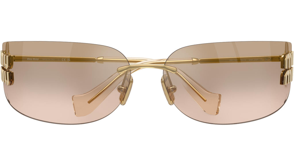 Occhiali da sole Miu Miu MU A51S 5AK20P donna con montatura rettangolare in metallo oro e lenti in poliammide color bronzo sfumato a specchio. Naselli regolabili. Linea: Fashion Show. Codice modello: 0MU A51S. Codice colore: 5AK20P. Made in Italy. Rivenditore autorizzato Miu Miu online. Gli occhiali vengono consegnati con custodia e accessori originali e sono coperti dalla garanzia ufficiale di 12 mesi del produttore.