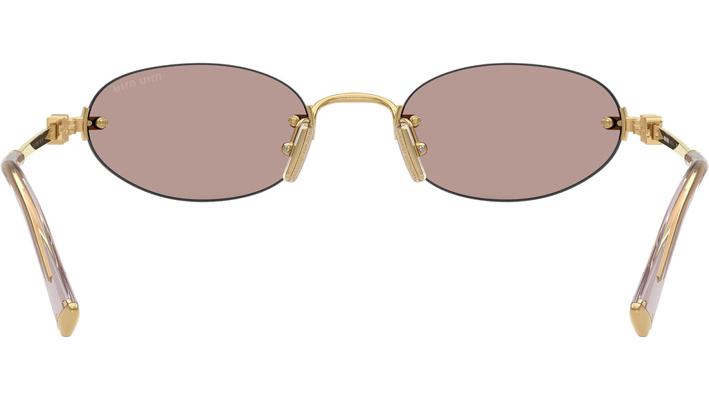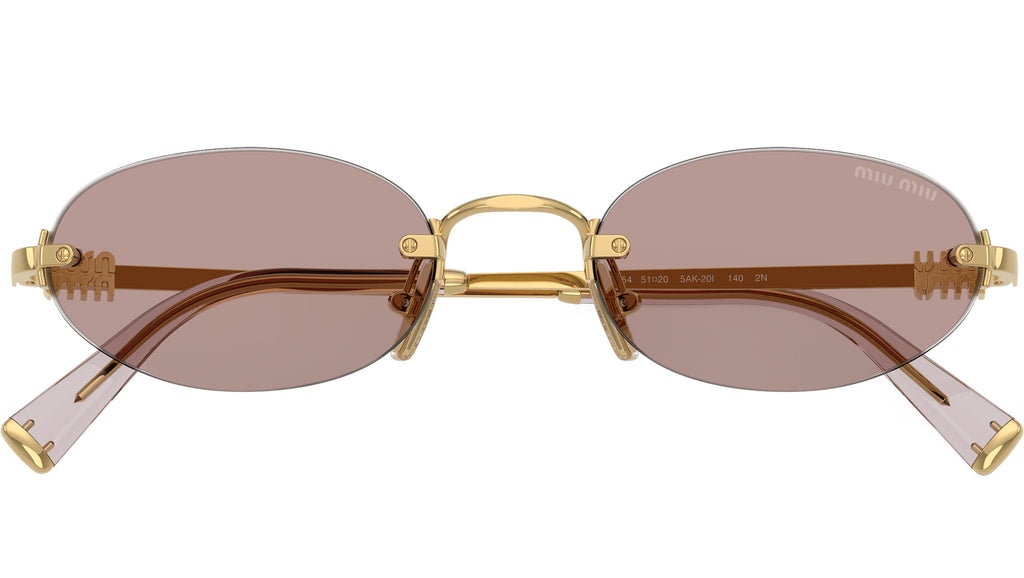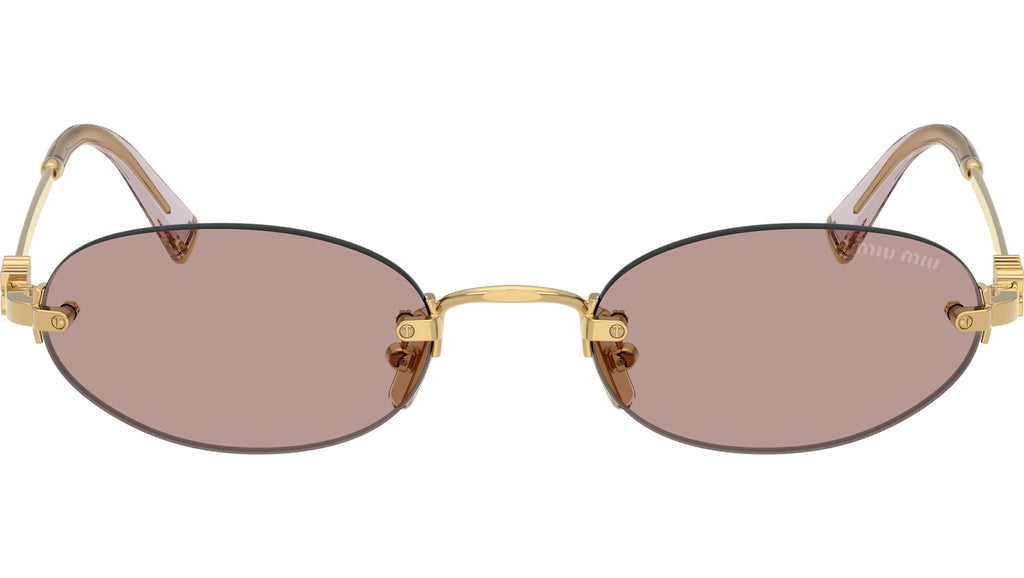Occhiali da sole Miu Miu MU A54S 5AK20I donna con montatura ovale in metallo oro e lenti in bio poliammide color marrone chiaro sfumato. Naselli regolabili. Linea: Miu Regard. Codice modello: 0MU A54S. Codice colore: 5AK20I. Made in Italy. Rivenditore autorizzato Miu Miu online. Gli occhiali vengono consegnati con custodia e accessori originali e sono coperti dalla garanzia ufficiale di 12 mesi del produttore.