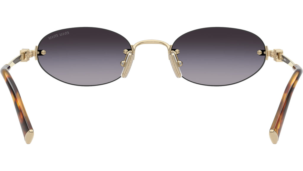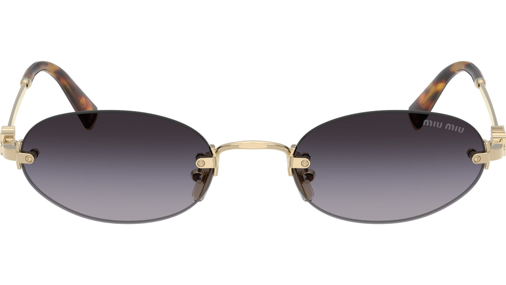Occhiali da sole Miu Miu MU A54S ZVN5D1 donna con montatura ovale in metallo oro pallido e lenti in poliammide color grigio sfumato. Naselli regolabili. Linea: Miu Regard. Codice modello: 0MU A54S. Codice colore: ZVN5D1. Made in Italy. Rivenditore autorizzato Miu Miu online. Gli occhiali vengono consegnati con custodia e accessori originali e sono coperti dalla garanzia ufficiale di 12 mesi del produttore.
