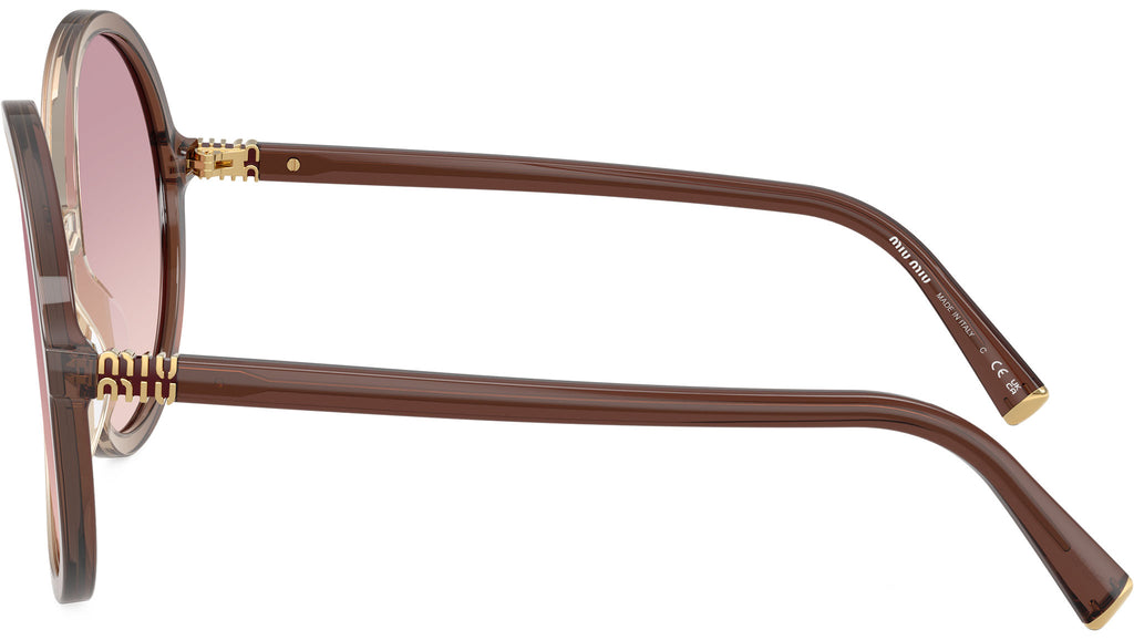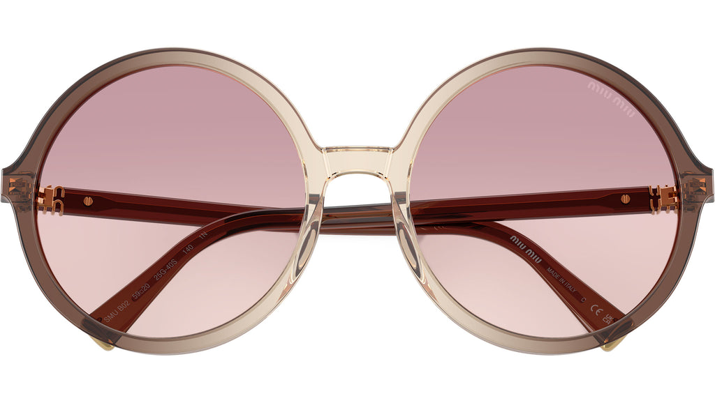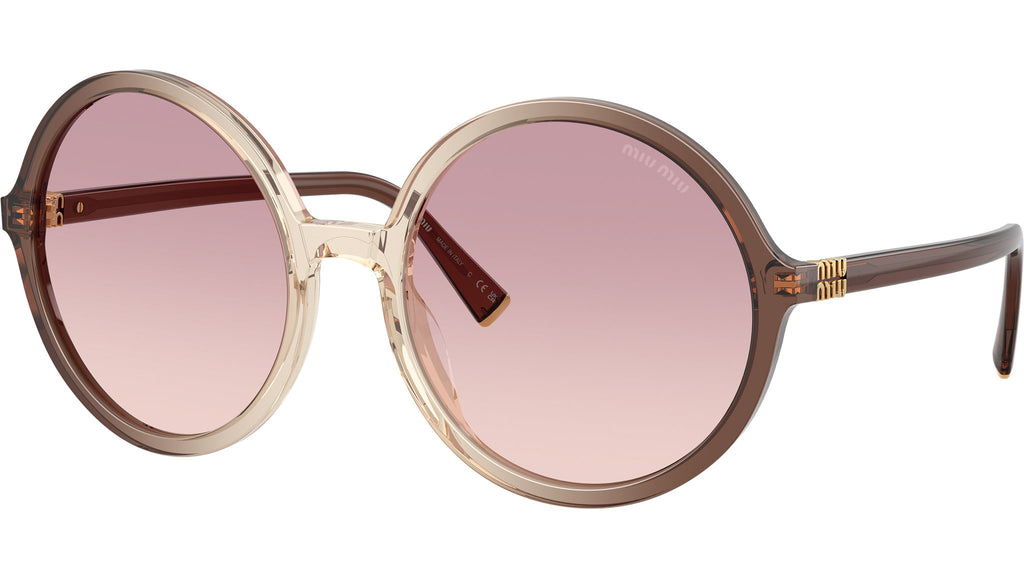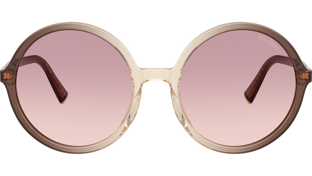 Occhiali da sole Miu Miu MU B02S 25G40S donna con montatura rotonda in acetato gradiente marrone e lenti in bio poliammide color marrone sfumato viola. Vestibilità a ponte alto. Linea: Main Collection. Codice modello: 0MU B02S. Codice colore: 25G40S. Made in Italy. Rivenditore autorizzato Miu Miu online. Gli occhiali vengono consegnati con custodia e accessori originali e sono coperti dalla garanzia ufficiale di 12 mesi del produttore.