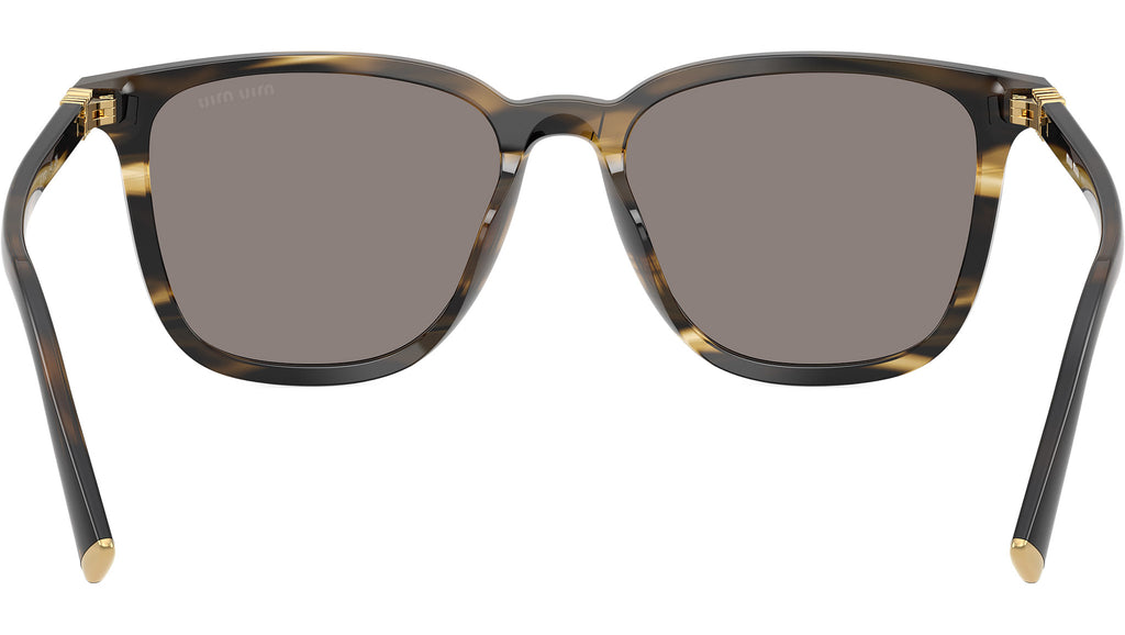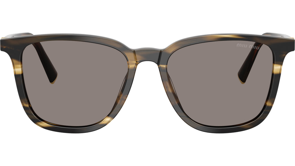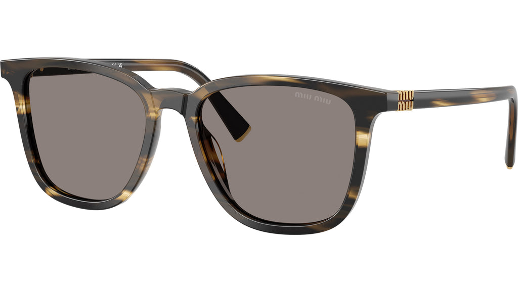 Occhiali da sole Miu Miu MU B03S 25E80Q donna con montatura quadrata in acetato loden rigato e lenti in bio poliammide color grigio scuro. Vestibilità a ponte alto. Linea: Main Collection. Codice modello: 0MU B03S. Codice colore: 25E80Q. Made in Italy. Rivenditore autorizzato Miu Miu online. Gli occhiali vengono consegnati con custodia e accessori originali e sono coperti dalla garanzia ufficiale di 12 mesi del produttore.