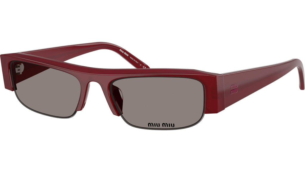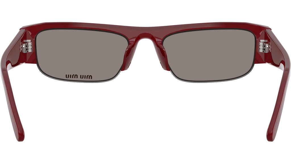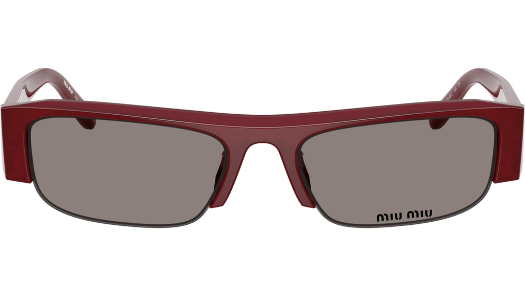Occhiali da sole Miu Miu MU B07S 21I80Q donna con montatura rettangolare in acetato borgogna opalino e lenti in bio poliammide color grigio scuro. Vestibilità a ponte alto. Linea: Fashion Show. Codice modello: 0MU B07S. Codice colore: 21I80Q. Made in Italy. Rivenditore autorizzato Miu Miu online. Gli occhiali vengono consegnati con custodia e accessori originali e sono coperti dalla garanzia ufficiale di 12 mesi del produttore.