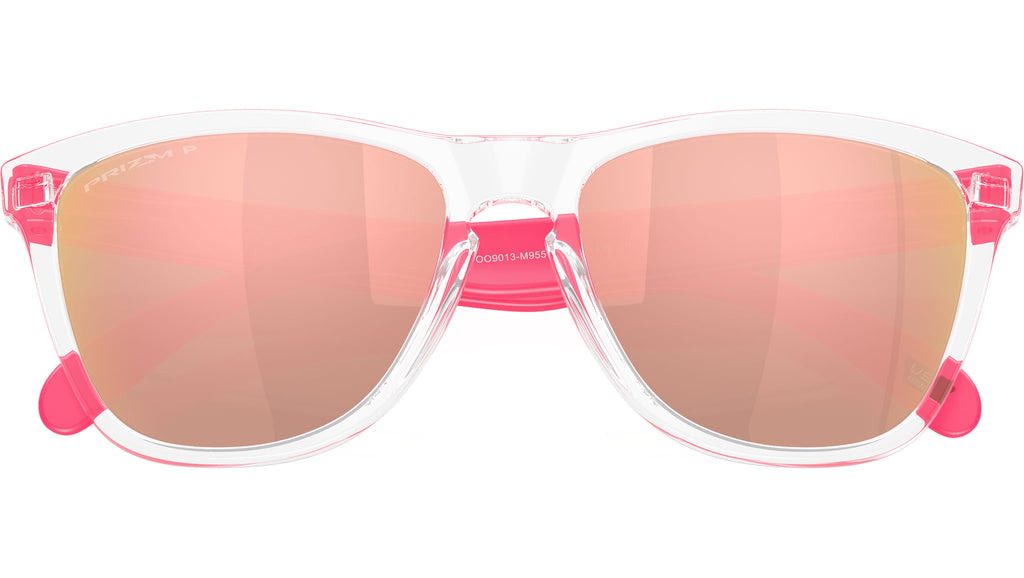 Occhiali da sole Oakley Frogskins uomo modello OO9013 con montatura full rim in nylon trasparente e lenti in policarbonato oro rosa prizm polarizzato. Vestibilità universale. Linea: Performance Lifestyle. Codice modello: 0OO9013. Codice colore: M9. Rivenditore autorizzato online Oakley. Gli occhiali includono la custodia e gli accessori originali e sono coperti da garanzia globale di 12 mesi del produttore.
