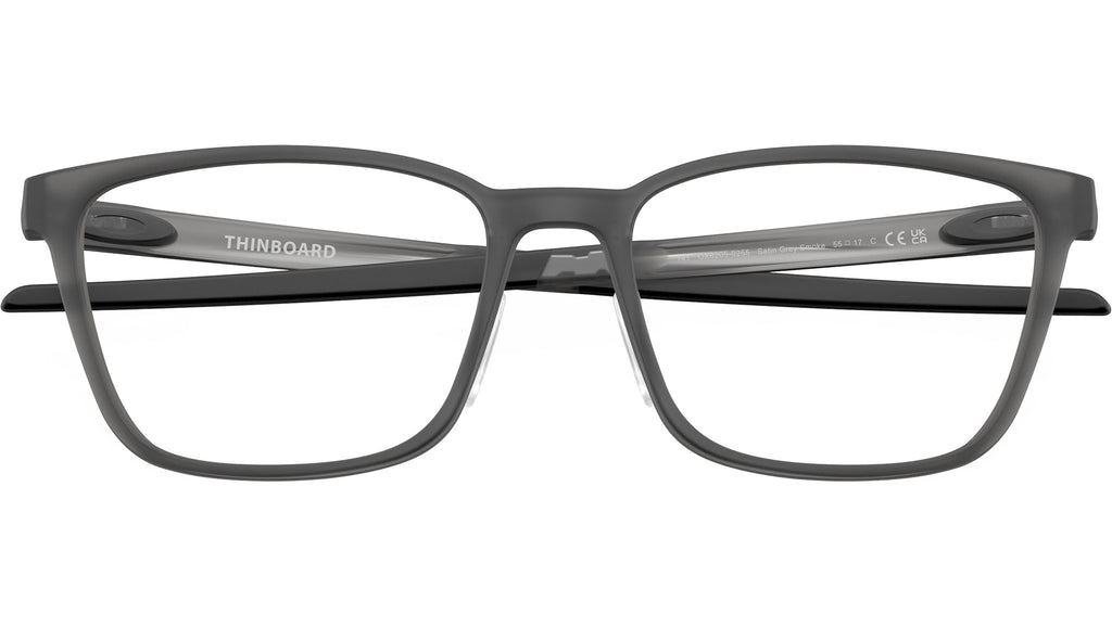 Occhiali da vista Oakley Thinboard unisex modello OX8205 con montatura full rim in nylon grigio fumo satinato e lenti demo. Vestibilità universale. Linea: Performance Lifestyle. Codice modello: 0OX8205. Codice colore: 02. Rivenditore autorizzato online Oakley. Gli occhiali includono la custodia e gli accessori originali e sono coperti da garanzia globale di 12 mesi del produttore.