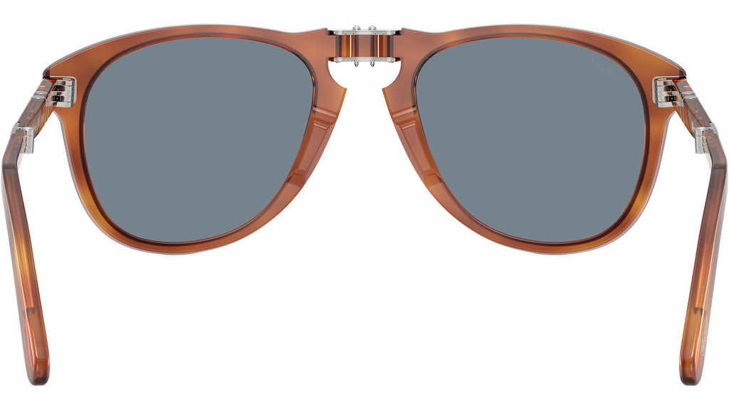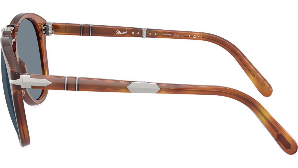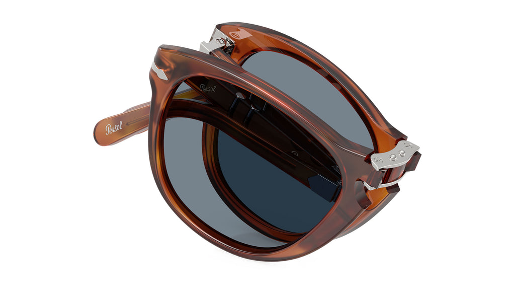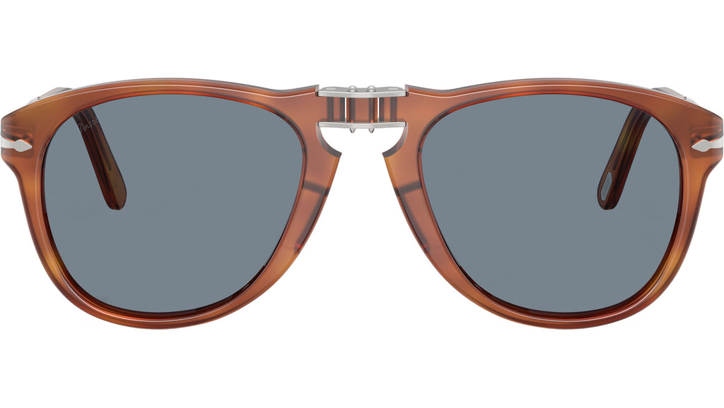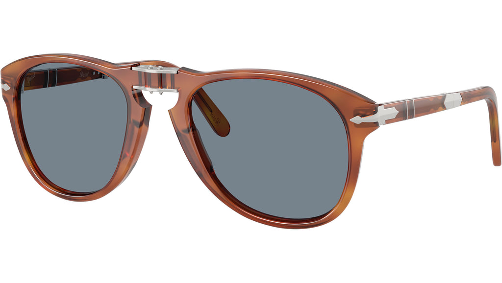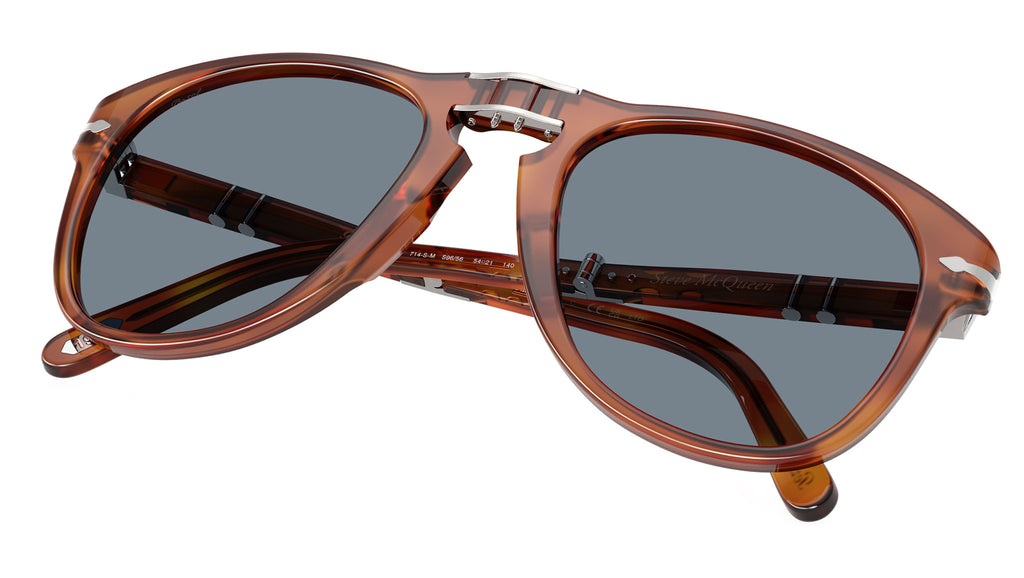 Gli occhiali da sole pieghevoli Persol Steve McQueen 714SM uniscono design senza tempo e innovazione, con un design ispirato direttamente dall’inconfondibile stile dell’attore. Realizzata in acetato color terra di siena, la silhouette aviator classica è valorizzata da un ponte nasale a chiave, dalle iconiche frecce Persol e dal sistema Meflecto, che assicura comfort e flessibilità. La montatura si piega con facilità per una maggiore praticità, mentre le lenti in cristallo azzurro chiaro offrono una visione nitida con un tocco rétro. Con misura 54-21, questa versione media garantisce una copertura equilibrata del viso, ideale per chi cerca eleganza funzionale e raffinata.