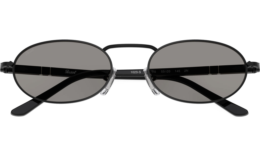 Occhiali da sole Persol unisex modello PO1023S 1078R5 con montatura rettangolare in metallo nero e lenti in cristallo grigio base 2.5. Naselli regolabili. Linea: Sartoria. Codice Brand: 0PO1023S. Codice colore: 1078R5. Rivenditore autorizzato online Persol Eyewear. Ogni prodotto Persol viene consegnato con astuccio originale e accessori ed è coperto da garanzia del produttore di 12 mesi.