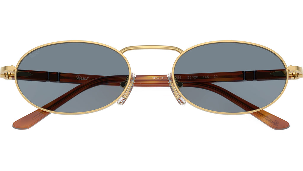 Occhiali da sole Persol unisex modello PO1023S 113256 con montatura rettangolare in metallo oro e lenti in cristallo blu base 2.5. Naselli regolabili. Linea: Sartoria. Codice Brand: 0PO1023S. Codice colore: 113256. Rivenditore autorizzato online Persol Eyewear. Ogni prodotto Persol viene consegnato con astuccio originale e accessori ed è coperto da garanzia del produttore di 12 mesi.