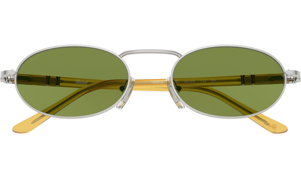 Occhiali da sole Persol unisex modello PO1023S 518/4E con montatura rettangolare in metallo argento e lenti in cristallo verde base 2.5. Naselli regolabili. Linea: Sartoria. Codice Brand: 0PO1023S. Codice colore: 518/4E. Rivenditore autorizzato online Persol Eyewear. Ogni prodotto Persol viene consegnato con astuccio originale e accessori ed è coperto da garanzia del produttore di 12 mesi.