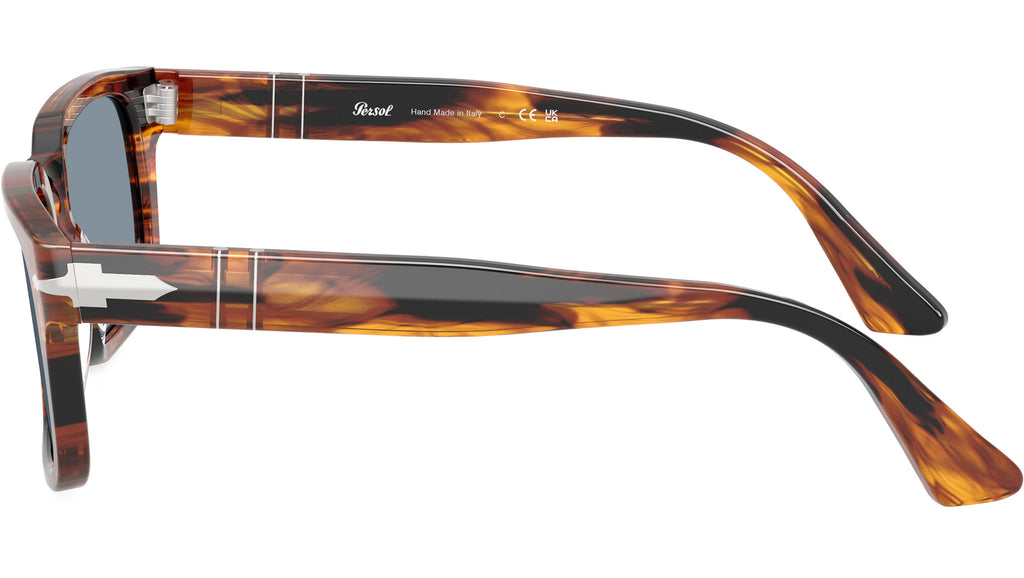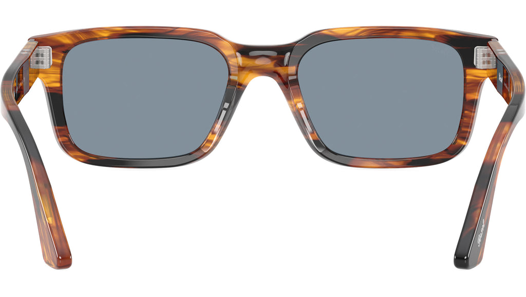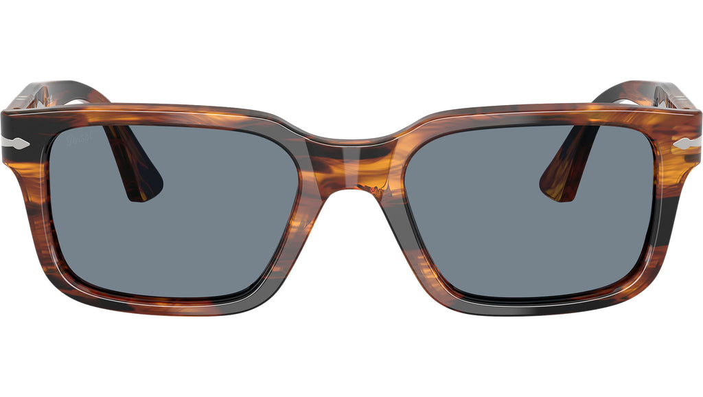 Occhiali da sole Persol uomo modello PO3272S 123556 con montatura rettangolare in acetato nero striato e marrone e lenti in cristallo azzurro base 6. Vestibilità a ponte alto. Linea: Officina. Codice Brand: 0PO3272S. Codice colore: 123556. Rivenditore autorizzato online Persol Eyewear. Ogni prodotto Persol viene consegnato con astuccio originale e accessori ed è coperto da garanzia del produttore di 12 mesi.