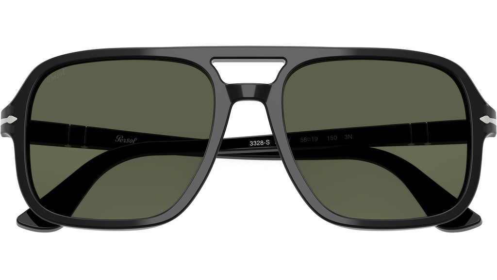 Occhiali da sole Persol uomo modello PO3328S 95/31 con montatura navigator in acetato nero e lenti in cristallo verde base 6. Vestibilità a ponte alto. Linea: Officina. Codice Brand: 0PO3328S. Codice colore: 95/31. Rivenditore autorizzato online Persol Eyewear. Ogni prodotto Persol viene consegnato con astuccio originale e accessori ed è coperto da garanzia del produttore di 12 mesi.