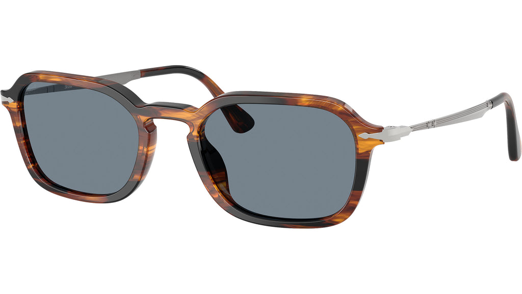 Occhiali da sole Persol unisex modello PO3381S 123556 con montatura panthos in acetato nero striato e marrone e lenti in cristallo azzurro base 4.25. Vestibilità a ponte alto. Linea: Galleria. Codice Brand: 0PO3381S. Codice colore: 123556. Rivenditore autorizzato online Persol Eyewear. Ogni prodotto Persol viene consegnato con astuccio originale e accessori ed è coperto da garanzia del produttore di 12 mesi.