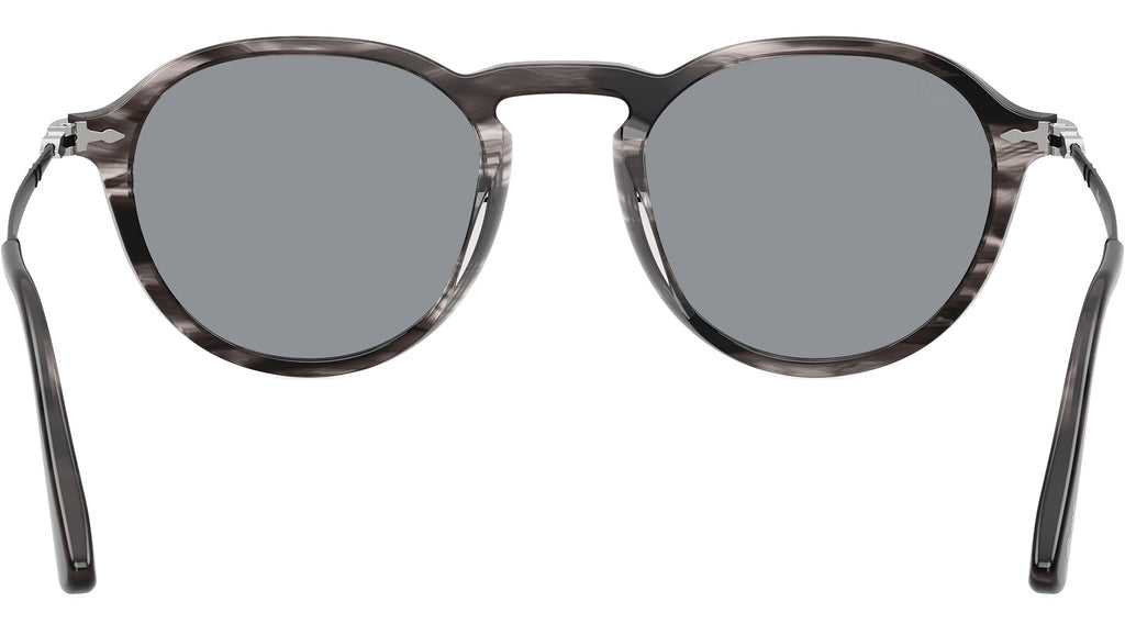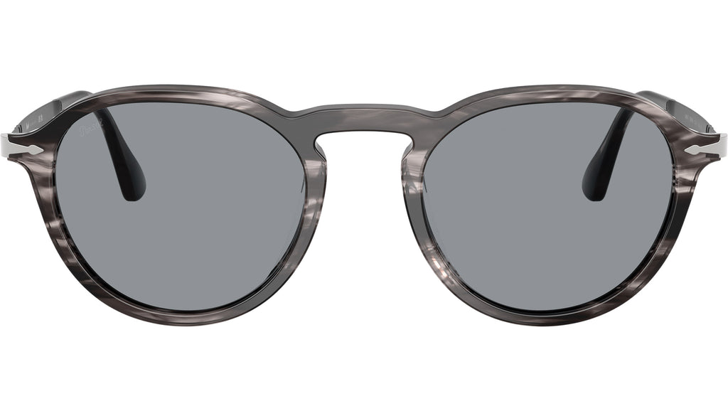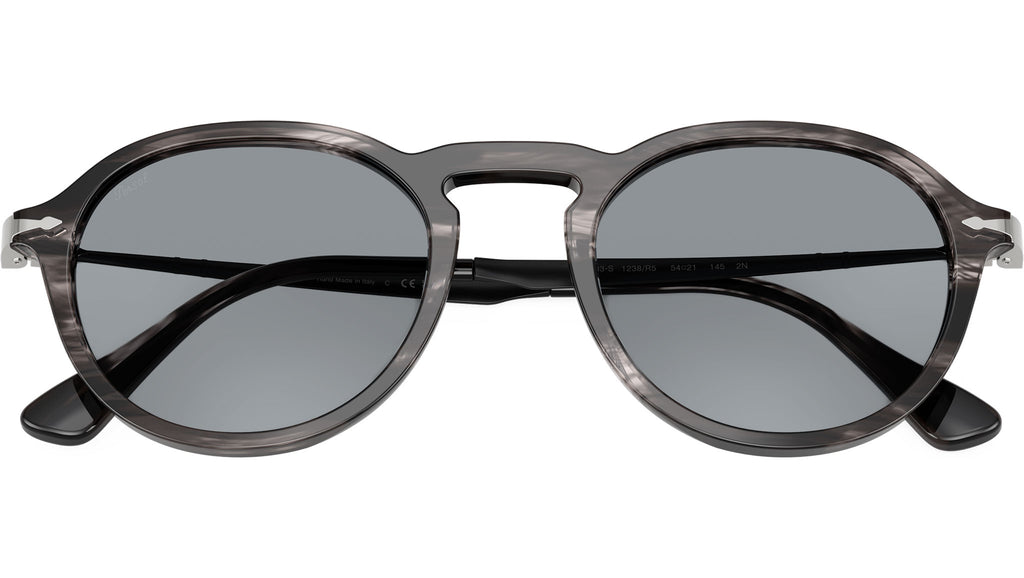 Occhiali da sole Persol unisex modello PO3383S 1238R5 con montatura panthos in acetato nero striato e grigio e lenti in cristallo blu base 4.25. Vestibilità a ponte alto. Linea: Galleria. Codice Brand: 0PO3383S. Codice colore: 1238R5. Rivenditore autorizzato online Persol Eyewear. Ogni prodotto Persol viene consegnato con astuccio originale e accessori ed è coperto da garanzia del produttore di 12 mesi.
