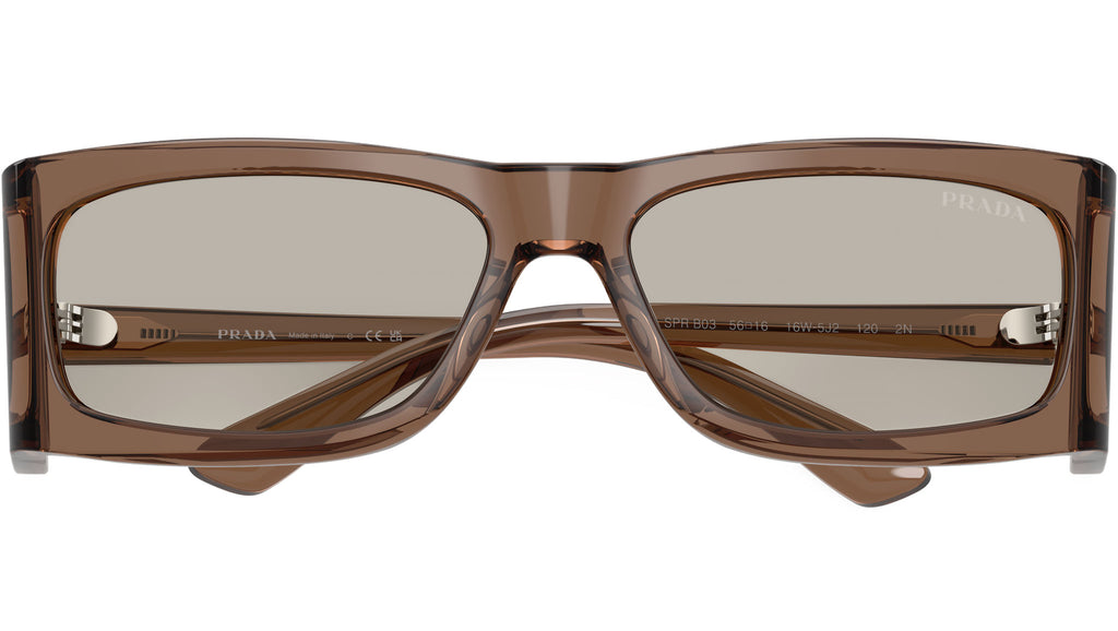 Occhiali da sole Prada PR B03S 16W5J2 uomo con montatura rettangolare in acetato marrone trasparente e lenti in poliammide color marrone chiaro. Vestibilità a ponte alto. Linea: Catwalk. Codice modello: PRB03S. Codice colore: 16W5J2. Made in Italy. Rivenditore autorizzato Prada online. Gli occhiali vengono consegnati con custodia e accessori originali e sono coperti dalla garanzia ufficiale di 12 mesi del produttore.