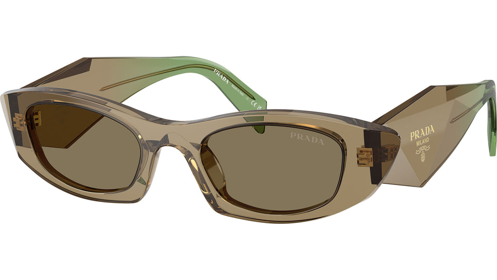 Occhiali da sole Prada PR B16S 29E90F donna con montatura ovale in acetato terra e lenti in bio poliammide color marrone chiaro. Vestibilità a ponte alto. Linea: Design. Codice modello: PRB16S. Codice colore: 29E90F. Made in Italy. Rivenditore autorizzato Prada online. Gli occhiali vengono consegnati con custodia e accessori originali e sono coperti dalla garanzia ufficiale di 12 mesi del produttore.