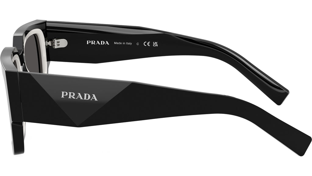 Occhiali da sole Prada PR B17S 16K08Z uomo con montatura rettangolare in acetato nero / talco e lenti in bio poliammide color grigio scuro. Vestibilità a ponte alto. Linea: Design. Codice modello: PRB17S. Codice colore: 16K08Z. Made in Italy. Rivenditore autorizzato Prada online. Gli occhiali vengono consegnati con custodia e accessori originali e sono coperti dalla garanzia ufficiale di 12 mesi del produttore.