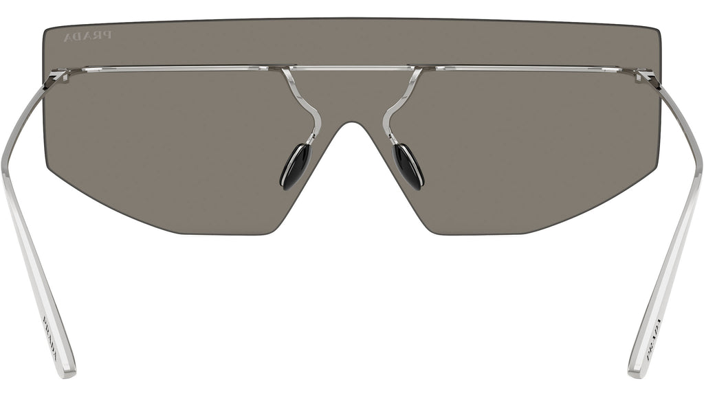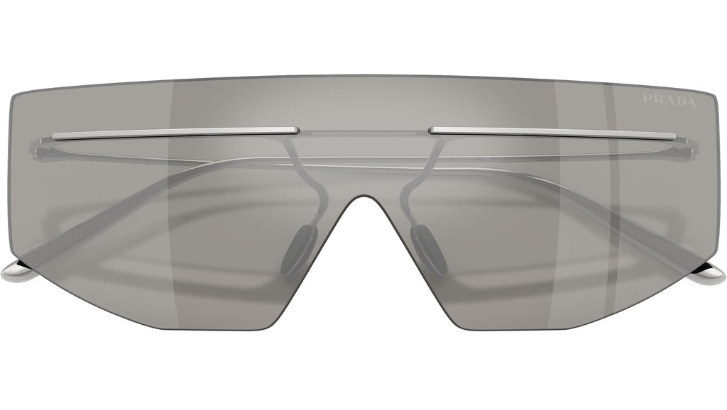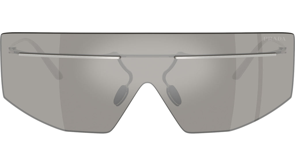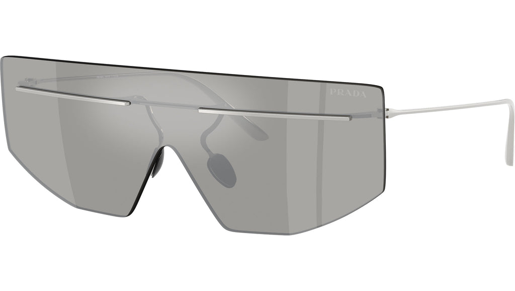 Occhiali da sole Prada PR B55S 1BC60N uomo con montatura geometrica in metallo argento e lenti in poliammide color grigio chiaro a specchio argento. Naselli regolabili. Linea: Catwalk. Codice modello: PRB55S. Codice colore: 1BC60N. Made in Italy. Rivenditore autorizzato Prada online. Gli occhiali vengono consegnati con custodia e accessori originali e sono coperti dalla garanzia ufficiale di 12 mesi del produttore.