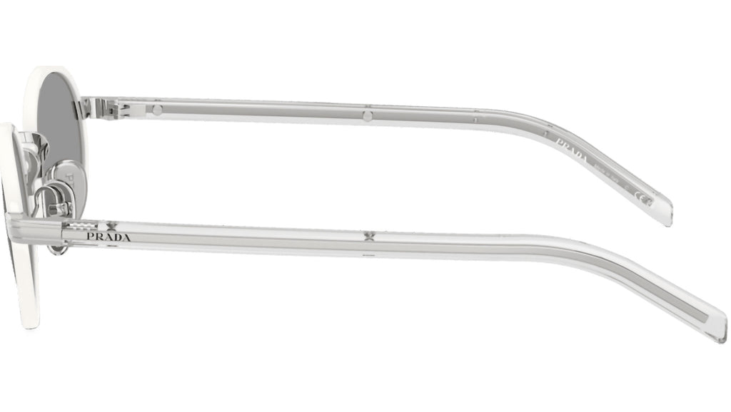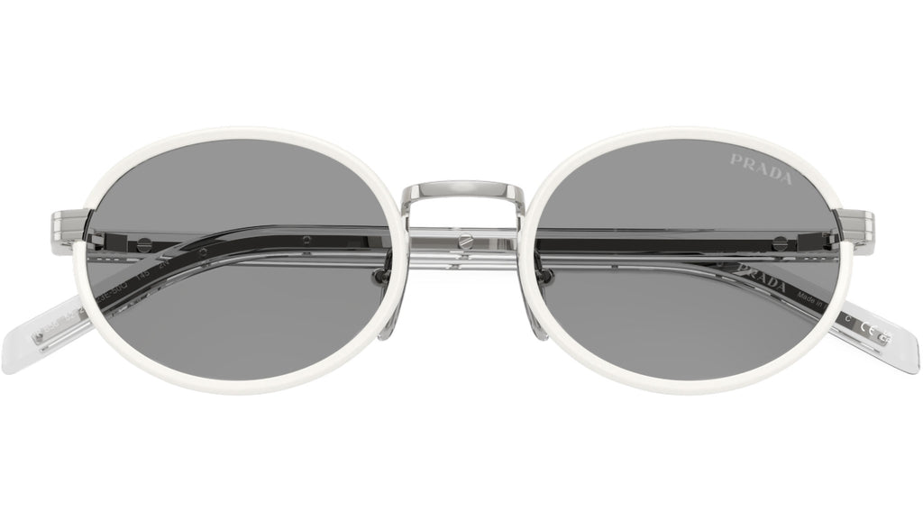 Occhiali da sole Prada PR B56S 23E50Q donna con montatura ovale in acciaio talco e lenti in bio poliammide color grigio. Naselli regolabili. Linea: Signature. Codice modello: PRB56S. Codice colore: 23E50Q. Made in Italy. Rivenditore autorizzato Prada online. Gli occhiali vengono consegnati con custodia e accessori originali e sono coperti dalla garanzia ufficiale di 12 mesi del produttore.