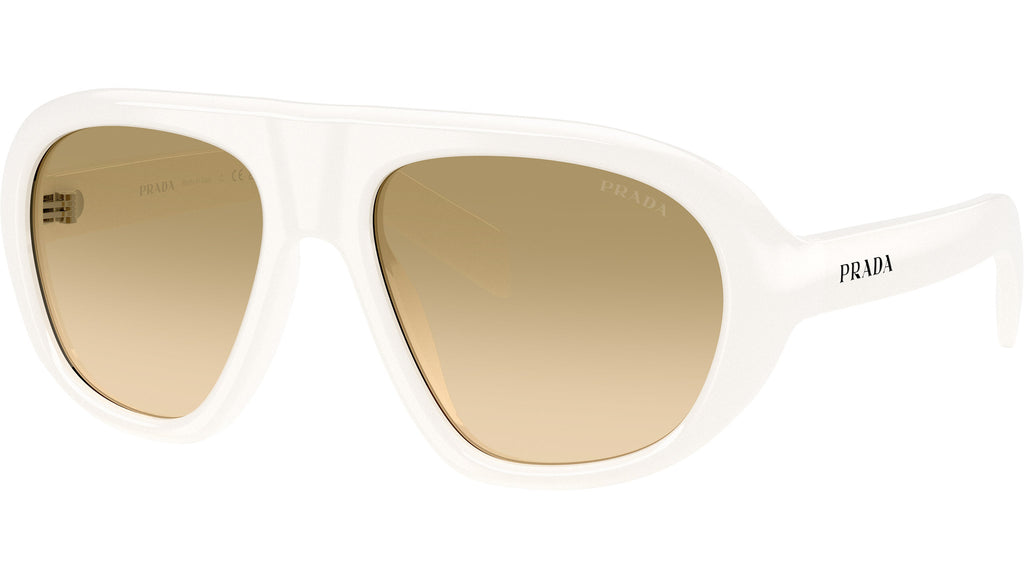 Occhiali da sole Prada PR C05S 17K20S donna con montatura geometrica in acetato talco e lenti in bio poliammide color giallo sfumato marrone. Vestibilità a ponte alto. Linea: Signature. Codice modello: PRC05S. Codice colore: 17K20S. Made in Italy. Rivenditore autorizzato Prada online. Gli occhiali vengono consegnati con custodia e accessori originali e sono coperti dalla garanzia ufficiale di 12 mesi del produttore.