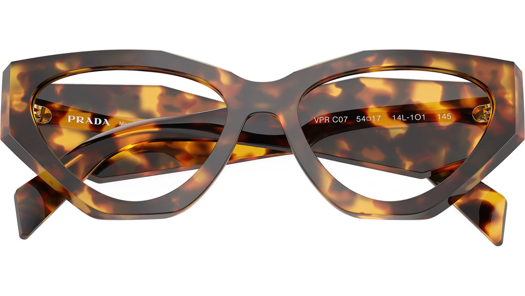 Occhiali da vista Prada PR C07V 14L1O1 donna con montatura geometrica in acetato tartaruga miele e lenti demo. Vestibilità a ponte alto. Linea: Design. Codice modello: PRC07V. Codice colore: 14L1O1. Made in Italy. Rivenditore autorizzato Prada online. Gli occhiali vengono consegnati con custodia e accessori originali e sono coperti dalla garanzia ufficiale di 12 mesi del produttore.