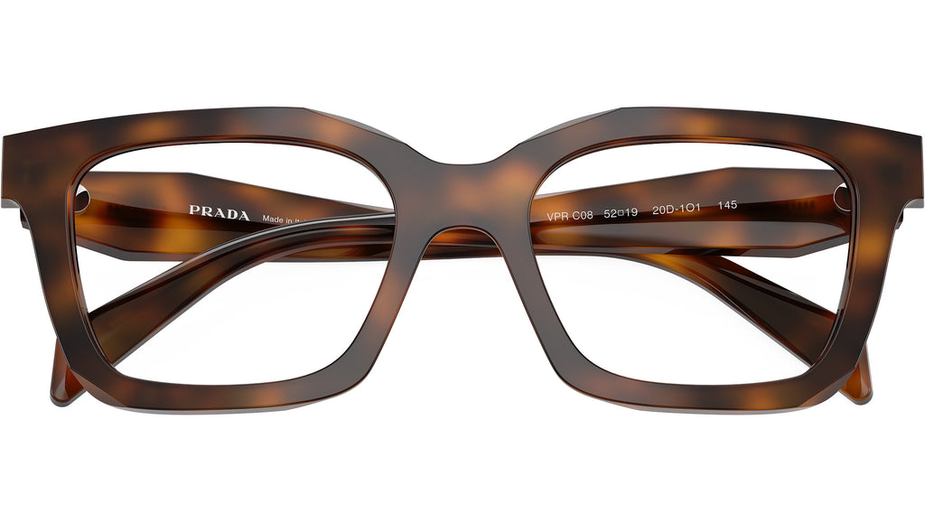 Occhiali da vista Prada PR C08V 20D1O1 donna con montatura geometrica in acetato tartaruga ginepro e lenti demo. Vestibilità a ponte alto. Linea: Design. Codice modello: PRC08V. Codice colore: 20D1O1. Made in Italy. Rivenditore autorizzato Prada online. Gli occhiali vengono consegnati con custodia e accessori originali e sono coperti dalla garanzia ufficiale di 12 mesi del produttore.
