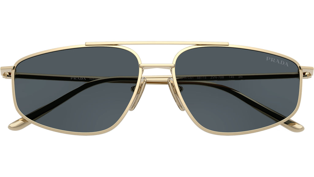 Occhiali da sole Prada PR C51S ZVN70B donna con montatura d-frame in metallo oro chiaro e lenti in bio poliammide color grigio scuro. Naselli regolabili. Linea: Essential. Codice modello: PRC51S. Codice colore: ZVN70B. Made in Italy. Rivenditore autorizzato Prada online. Gli occhiali vengono consegnati con custodia e accessori originali e sono coperti dalla garanzia ufficiale di 12 mesi del produttore.