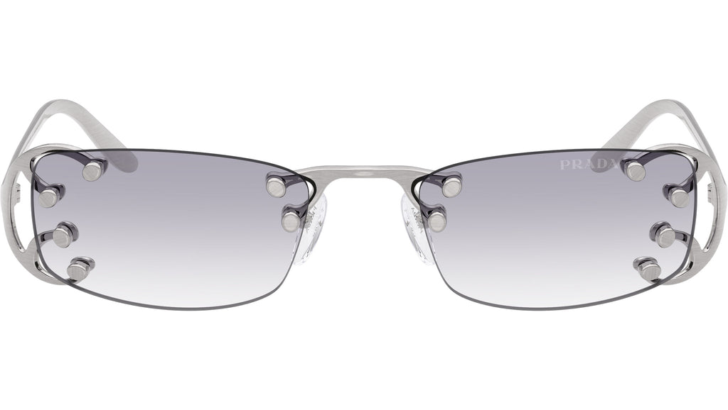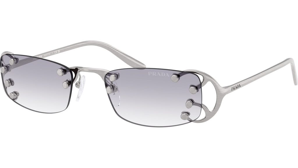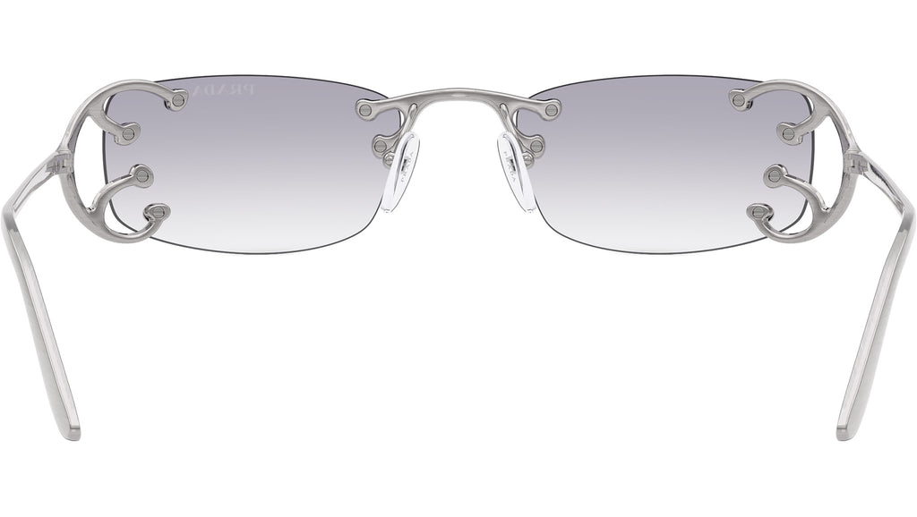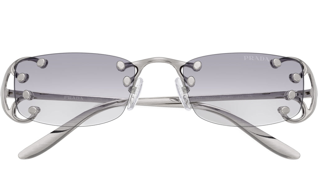 Occhiali da sole Prada PR C57S 28H40V donna con montatura rettangolare in metallo argento nouveau e lenti in bio poliammide color grigio scuro sfumato. Naselli regolabili. Linea: Fashion Show. Codice modello: PRC57S. Codice colore: 28H40V. Made in Italy. Rivenditore autorizzato Prada online. Gli occhiali vengono consegnati con custodia e accessori originali e sono coperti dalla garanzia ufficiale di 12 mesi del produttore.