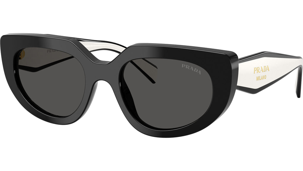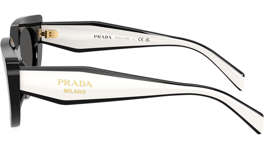 Occhiali da sole Prada PR D02S 20G08Z donna con montatura ovale in acetato nero e lenti in bio poliammide color grigio scuro. Vestibilità a ponte alto. Linea: Design. Codice modello: PRD02S. Codice colore: 20G08Z. Made in Italy. Rivenditore autorizzato Prada online. Gli occhiali vengono consegnati con custodia e accessori originali e sono coperti dalla garanzia ufficiale di 12 mesi del produttore.