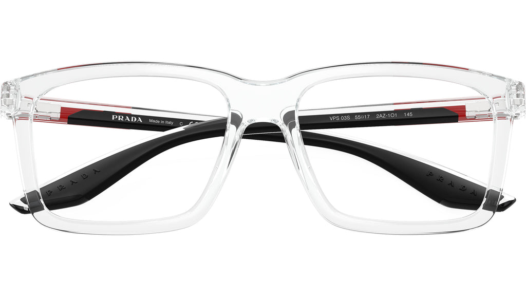 Occhiali da vista Prada Linea Rossa PS 03SV 2AZ1O1 uomo con montatura rettangolare in iniettato trasparente e lenti demo. Vestibilità a ponte alto. Linea: Lifestyle. Codice modello: PS03SV. Codice colore: 2AZ1O1. Made in Italy. Rivenditore autorizzato Prada Sport online. Gli occhiali vengono consegnati con custodia e accessori originali e sono coperti dalla garanzia ufficiale di 12 mesi del produttore.