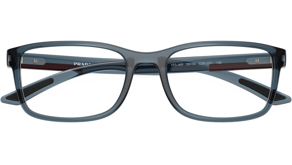 Occhiali da vista Prada Linea Rossa PS 06RV CZH1O1 uomo con montatura d-frame in iniettato azzurro trasparente e lenti demo. Vestibilità a ponte alto. Linea: Lifestyle. Codice modello: PS06RV. Codice colore: CZH1O1. Made in Italy. Rivenditore autorizzato Prada Sport online. Gli occhiali vengono consegnati con custodia e accessori originali e sono coperti dalla garanzia ufficiale di 12 mesi del produttore.
