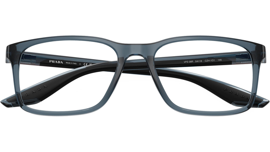 Occhiali da vista Prada Linea Rossa PS 08RV CZH1O1 uomo con montatura d-frame in iniettato azzurro trasparente e lenti demo. Vestibilità a ponte alto. Linea: Lifestyle. Codice modello: PS08RV. Codice colore: CZH1O1. Made in Italy. Rivenditore autorizzato Prada Sport online. Gli occhiali vengono consegnati con custodia e accessori originali e sono coperti dalla garanzia ufficiale di 12 mesi del produttore.