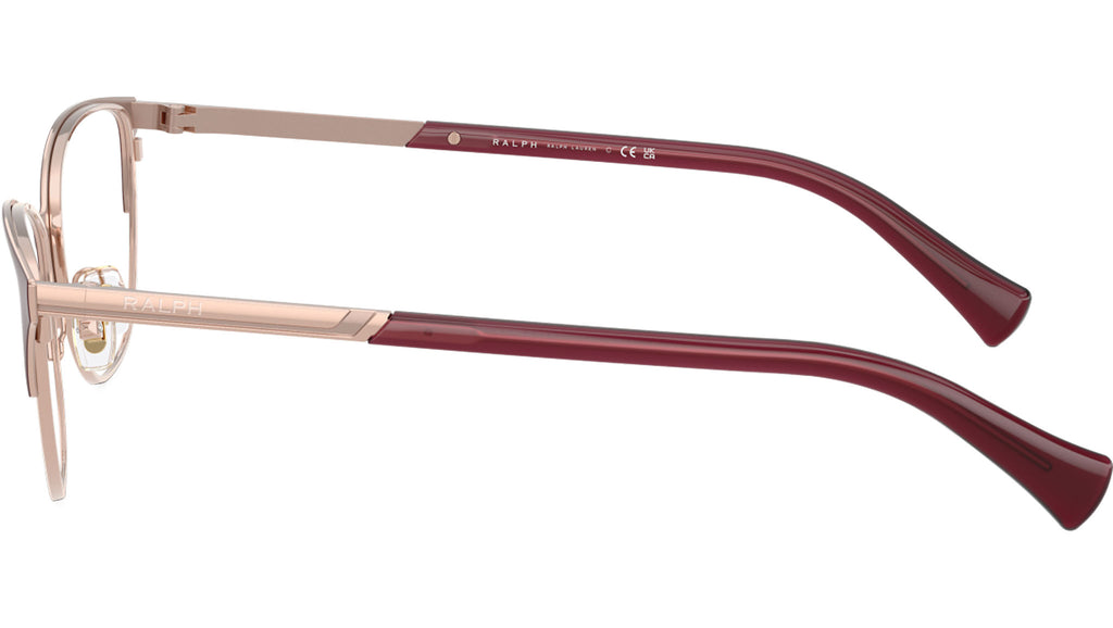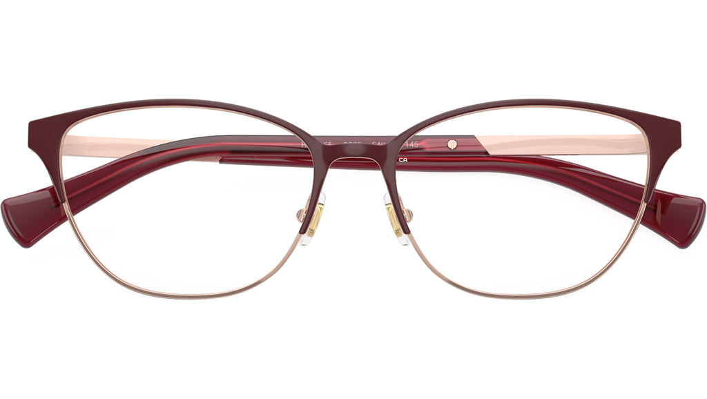Occhiali da vista Ralph RA6055 9365 con montatura cat eye in metallo bordeaux e lenti demo. Naselli regolabili. Linea: Modern. Codice modello: 0RA6055. Codice colore: 9365. Rivenditore autorizzato Ralph online. Gli occhiali vengono consegnati con custodia e accessori originali e sono coperti dalla garanzia ufficiale di 12 mesi del produttore.