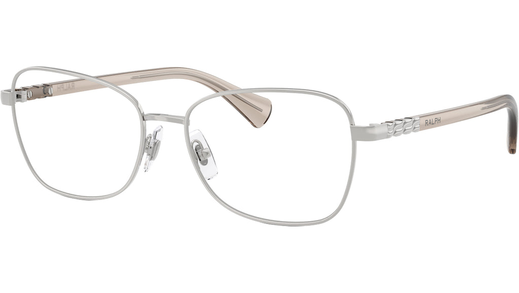 Occhiali da vista Ralph RA6062 9001 con montatura squadrata in metallo argento lucido e lenti demo. Naselli regolabili. Linea: Glamour. Codice modello: 0RA6062. Codice colore: 9001. Rivenditore autorizzato Ralph online. Gli occhiali vengono consegnati con custodia e accessori originali e sono coperti dalla garanzia ufficiale di 12 mesi del produttore.